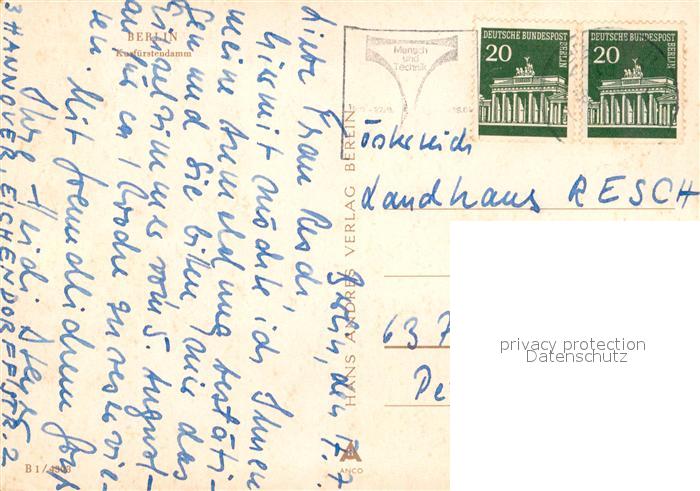 73157229 alte Postkarte BERLIN DE Kurfuerstendamm Gedaechtniskirche postalisch gelaufen Erhaltung siehe scans [FriedD77] KatCode: 11110011000000