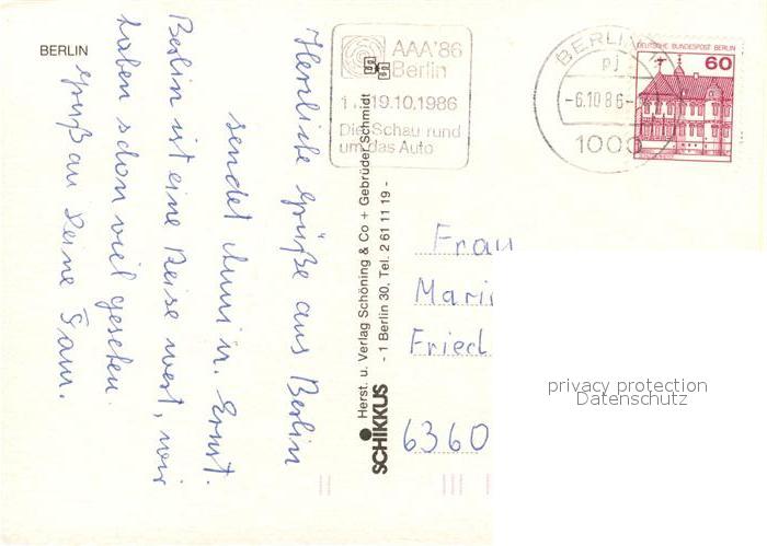 73227369 alte Postkarte BERLIN DE Sehenswuerdigkeiten der Stadt Siegesdenkmal Gedaechtniskirche Weltstadt mit Herz und Schnauze postalisch gelaufen Erhaltung siehe scans [FriedD77] KatCode: 11110011000000