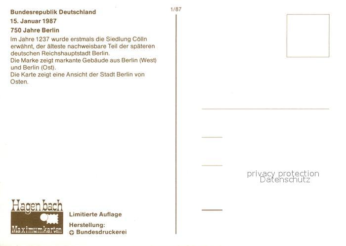 73177559 BERLIN DE Stadtansicht von Osten 750 Jahre Berlin Stempel postalisch nicht gelaufen Erhaltung siehe scans [FriedD77] KatCode: 11110011000000