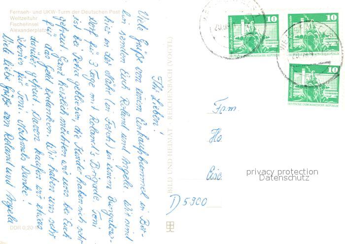 73166183 alte Postkarte BERLIN DE Weltzeituhr Fischerinsel Alexanderplatz postalisch gelaufen Erhaltung siehe scans [NatalD47] KatCode: 11110011000000
