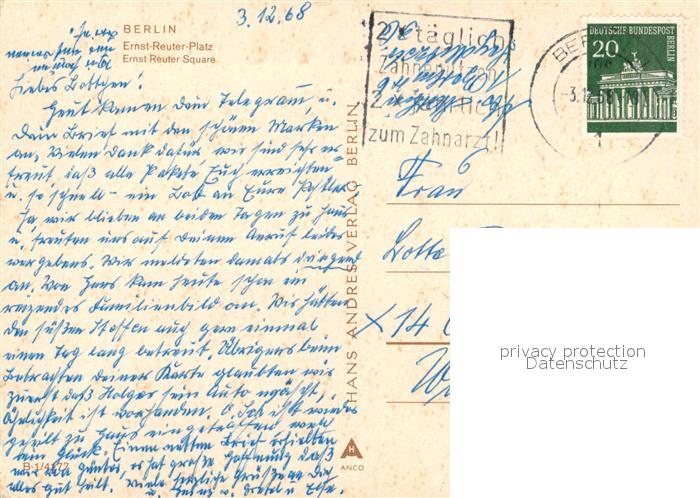 73305247 alte Postkarte Berlin Ernst Reuter Platz Wasserspiele Nachtaufnahme postalisch gelaufen Erhaltung siehe scans [FriedD77] KatCode: 11110011000000