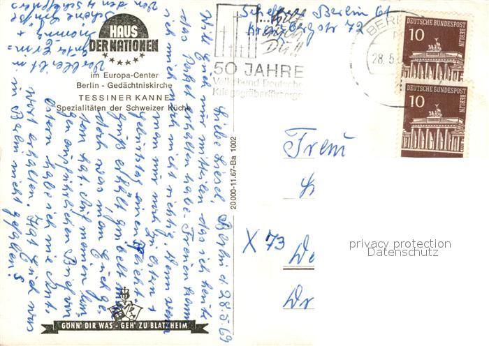 73524191 alte Postkarte Berlin Europa-Center Haus der Nationen Tessiner-Kanne postalisch gelaufen Erhaltung siehe scans [LiesaD40] KatCode: 11110011000000