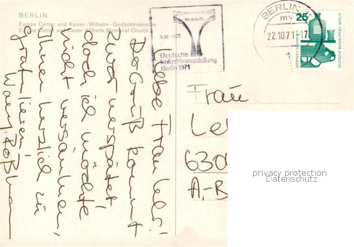 73272103 alte Postkarte Berlin Europa Center Kaiser Wilhelm Gedaechtniskirche postalisch gelaufen Erhaltung siehe scans [FriedD77] KatCode: 11110011000000