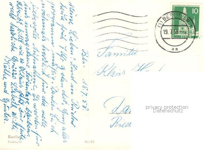 73357710 alte Postkarte Berlin Funkturm Fahne Berliner Loewe postalisch gelaufen Erhaltung siehe scans [FriedD77] KatCode: 11110011000000