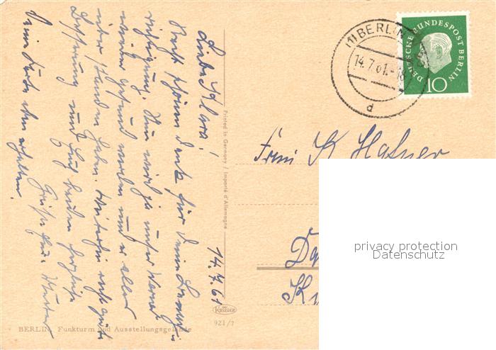 73357265 alte Postkarte Berlin Funkturm und Ausstellungsgelaende postalisch gelaufen Erhaltung siehe scans [FriedD77] KatCode: 11110011000000
