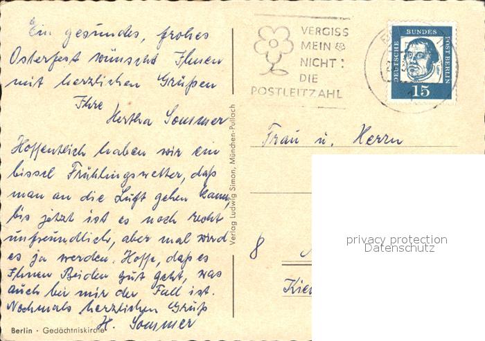 alte Postkarte Berlin Gedaechtniskirche postalisch gelaufen Erhaltung siehe scans
