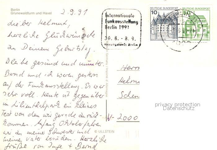 73291673 alte Postkarte Berlin Grunewaldturm Havel postalisch gelaufen Erhaltung siehe scans [KathaD81] KatCode: 11110011000000