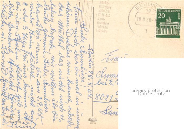 73357272 alte Postkarte Berlin Hansaviertel Hochhaeuser postalisch gelaufen Erhaltung siehe scans [FriedD77] KatCode: 11110011000000