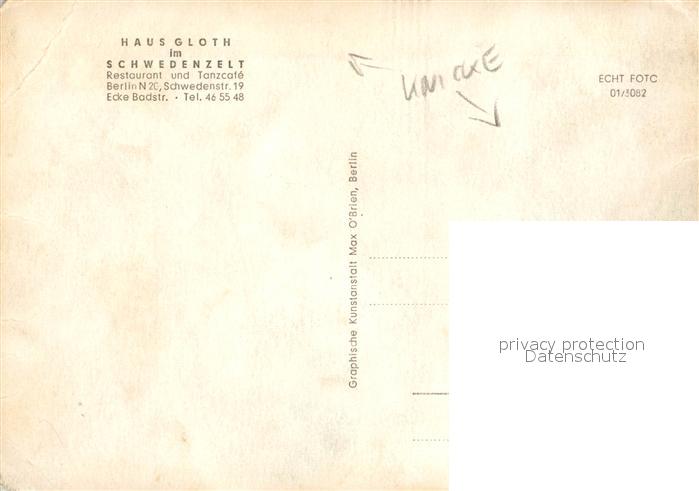 33045136 Berlin Haus Gloth Schwedenzelt postalisch nicht gelaufen Erhaltung siehe scans [NatalD47] KatCode: 11110011000000