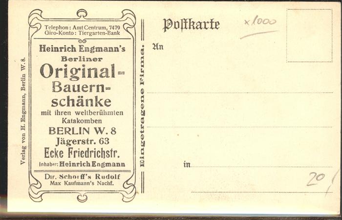 41383035 Berlin Heinrich Engmann’s Berliner Original-Bauern-Schänke Die kleine Excellenz KatCode 11110011000000