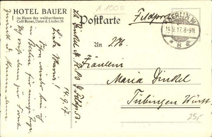 41392154 Berlin Hotel Cafe Bauer Unter den Linden Feldpost KatCode 11110011000000