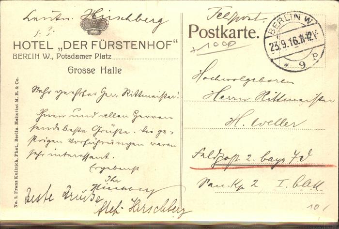 41383243 Berlin Hotel Der Fürstenhof Grosse Halle KatCode 11110011000000