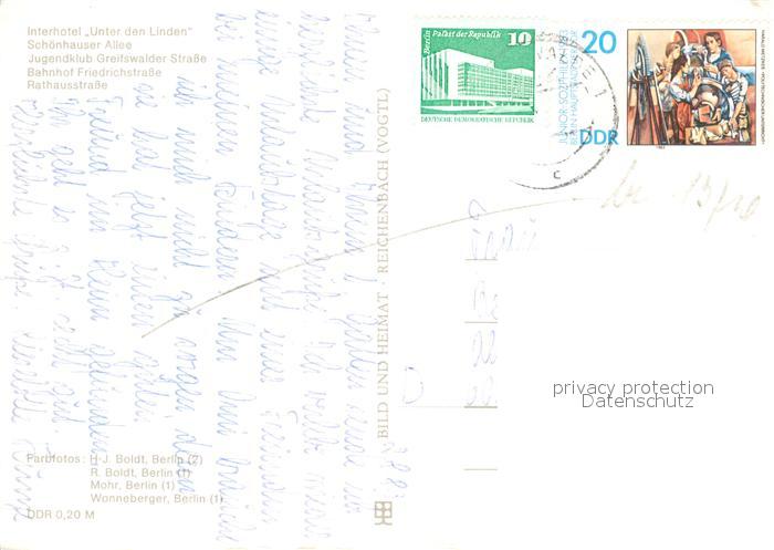 73267889 alte Postkarte Berlin Interhotel Unter den Linden Schoenhauser Allee Jugendclub Greifswalder Strasse postalisch gelaufen Erhaltung siehe scans [PaolaD17] KatCode: 11110011000000