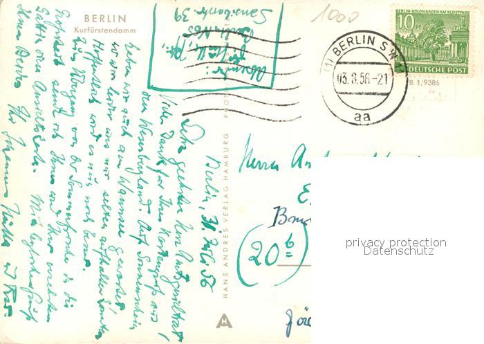 73565342 alte Postkarte Berlin Kuerfuerstendamm Nachtaufnahme Gedaechtniskirch postalisch gelaufen Erhaltung siehe scans [KathaD81] KatCode: 11110011000000