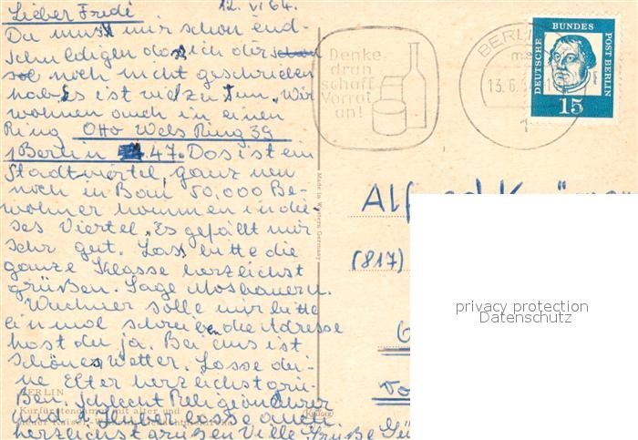 73358115 alte Postkarte Berlin Kurfuerstendamm alte und neue Kaiser Wilhelm Gedaechtnis Kirche postalisch gelaufen Erhaltung siehe scans [KathaD81] KatCode: 11110011000000
