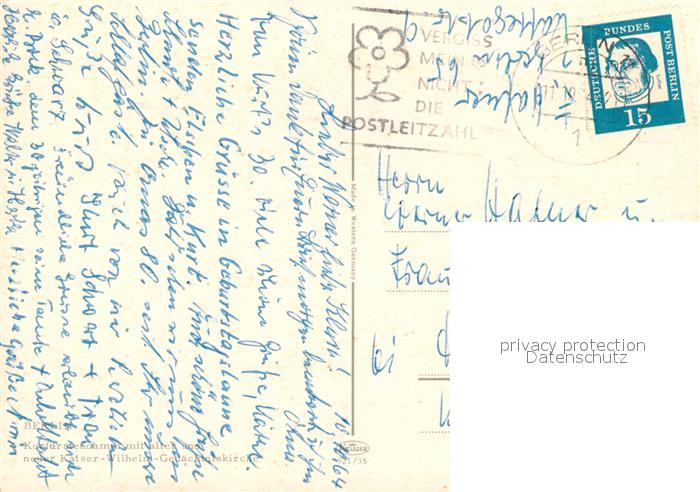 73358122 alte Postkarte Berlin Kurfuerstendamm Kaiser Wilhelm Gedaechtnis Kirche postalisch gelaufen Erhaltung siehe scans [KathaD81] KatCode: 11110011000000