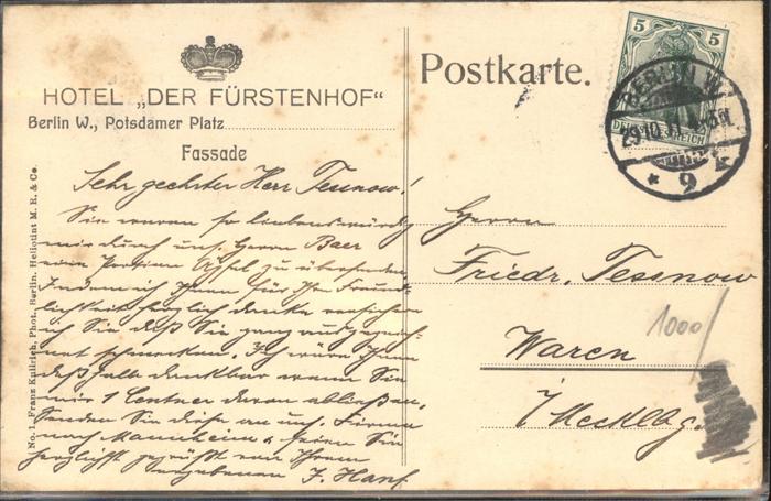 41080031 Berlin Potsdamerplatz Hotel Fürstenhof Strassenbahn KatCode 11110011000000