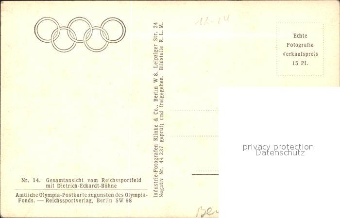 31910382 Berlin Reichssportfeld Dietrich-Eckardt-Buehne Fliegeraufnahme postalisch nicht gelaufen Erhaltung siehe scans KatCode: 11110011000000