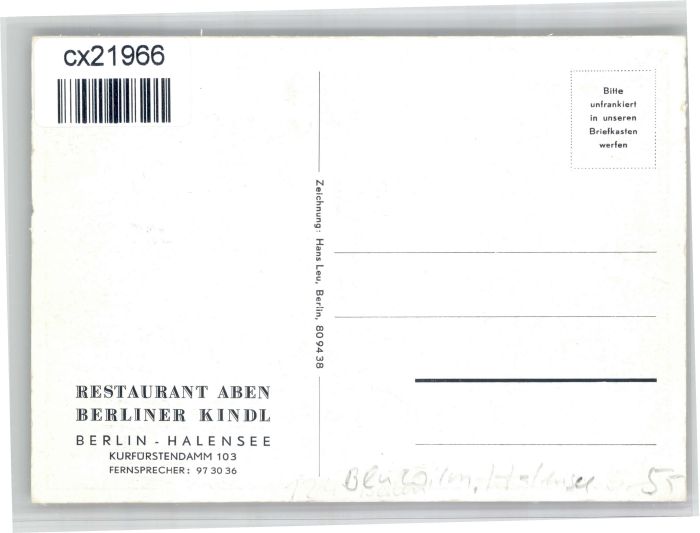 30739885 Berlin Restaurant Aben postalisch nicht gelaufen KatCode: 11110011000000