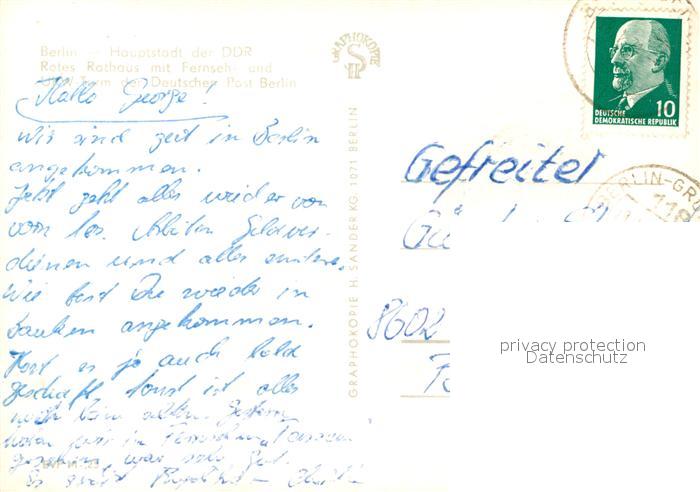 73335657 alte Postkarte Berlin Rotes Rathaus Fernseh- und UKW Turm Hauptstadt der DDR postalisch gelaufen Erhaltung siehe scans [FriedD77] KatCode: 11110011000000