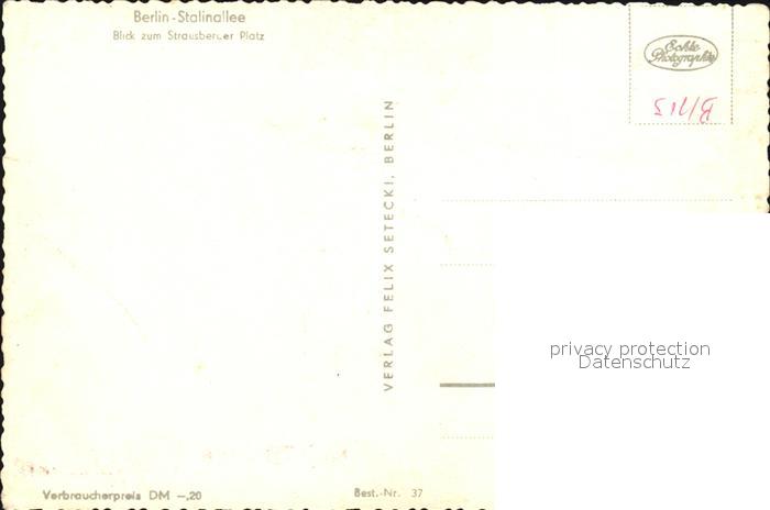 Berlin Stalinallee Strausberger Platz postalisch nicht gelaufen Erhaltung siehe scans