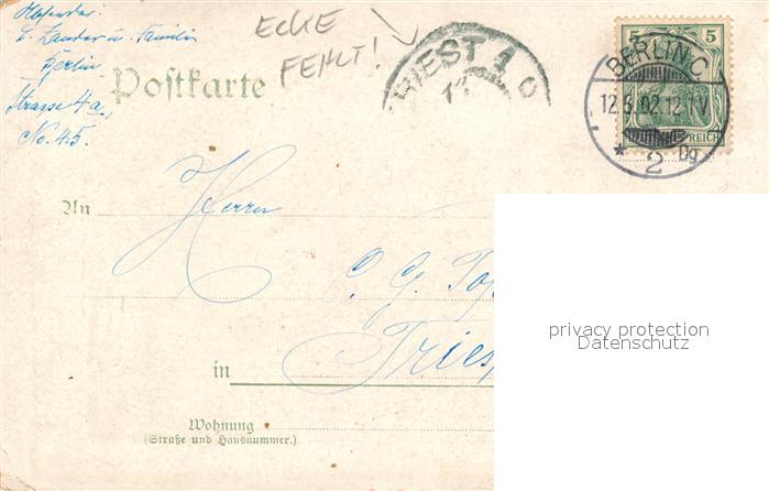 73565139 alte Postkarte Berlin ueberschwemmung Invalidenstrasse Gartenstrasse postalisch gelaufen Erhaltung siehe scans [KathaD81] KatCode: 11110011000000