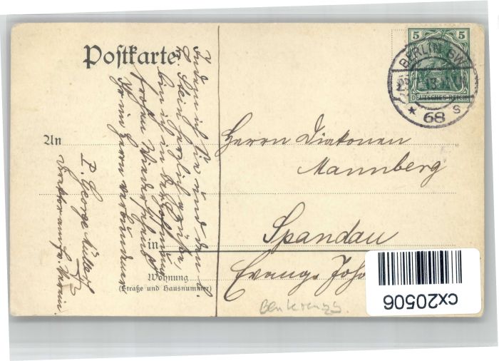30739855 alte Postkarte Berlin Vereinshaus Oranienstrasse 106 postalisch gelaufen KatCode: 11110011000000