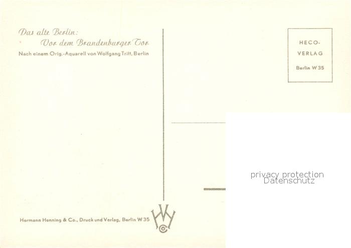 73296262 Berlin Vor dem Brandenburger Tor Aquarell postalisch nicht gelaufen Erhaltung siehe scans [WerneD78] KatCode: 11110011000000