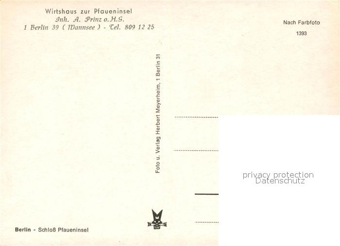 73129914 Berlin-Wannsee Wirtshaus zur Pfaueninsel Schloss postalisch nicht gelaufen Erhaltung siehe scans [KathaD81] KatCode: 11110011000000
