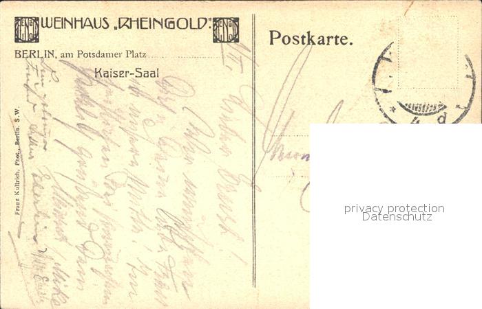 31721759 alte Postkarte Berlin Weinhaus Rheingold Potsdamer Platz Kaisersaal postalisch gelaufen Erhaltung siehe scans KatCode: 11110011000000