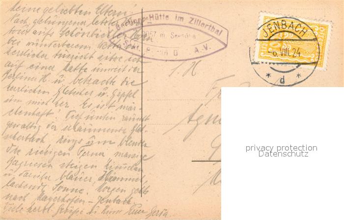 43107568 alte Postkarte Berlinerhuette Berghuette Zillertal Gletscher Zillertaler Alpen postalisch gelaufen Erhaltung siehe scans [FriedD77] KatCode: 11390335070920
