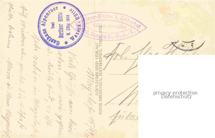 74128604 alte Postkarte Berlinerhuette Berliner-Huette 2040 Zillertal Tirol AT mit Gr Moesele und Waxeggkees postalisch gelaufen Erhaltung siehe scans [WerneD78] KatCode: 11390335070920