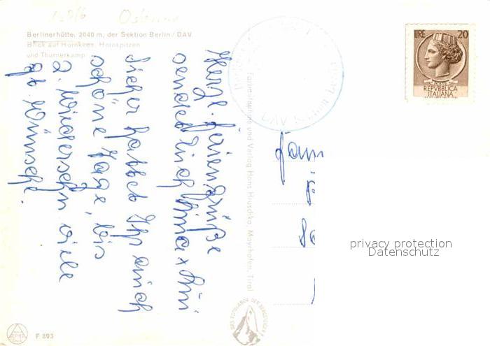 72666062 Berlinerhuette mit Hornkees Hornspitzen und Thurnerkamp postalisch nicht gelaufen Erhaltung siehe scans [WerneD78] KatCode: 11390335070920