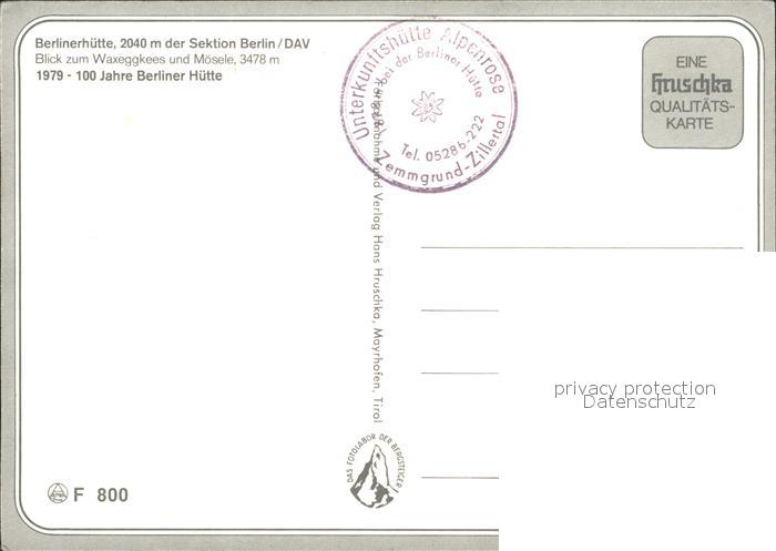 71928543 Berlinerhuette Waxeggkees Moesele postalisch nicht gelaufen Erhaltung siehe scans KatCode: 11390335070920