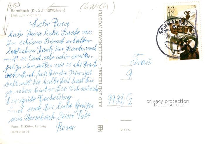 73842075 alte Postkarte Bermbach Schmalkalden Panorama Blick zum Knuellfeld postalisch gelaufen Erhaltung siehe scans [FriedD77] KatCode: 11110016066008