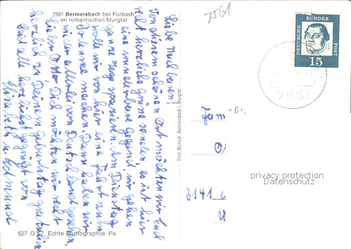31734737 alte Postkarte Bermersbach Forbach postalisch gelaufen Erhaltung siehe scans KatCode: 11110008216013