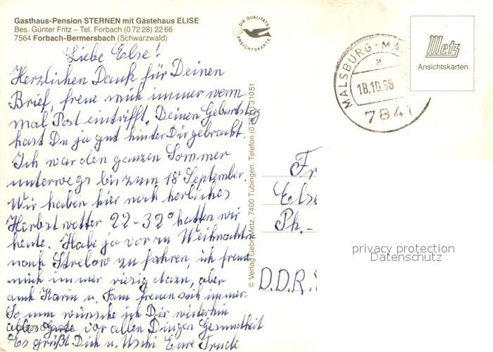 73642184 alte Postkarte Bermersbach Forbach Gasthaus Pension Sternen mit Gaestehaus Elise postalisch gelaufen Erhaltung siehe scans [WerneD78] KatCode: 11110008216013