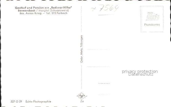 41786353 Bermersbach Forbach Gasthof Pension zur Badener Hoehe Murgtal Schwarzwald postalisch nicht gelaufen Erhaltung siehe scans Alte Ansichtskarte Postkarte hz_F Katcode 11110008216013