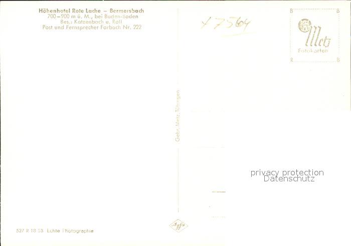 41768041 Bermersbach Forbach Hoehenhotel Rote Lache postalisch nicht gelaufen Erhaltung siehe scans KatCode: 11110008216013