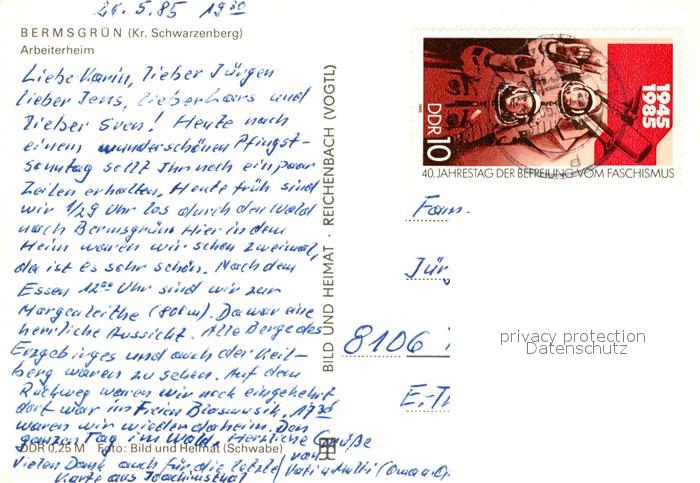 73071653 alte Postkarte Bermsgruen Arbeiterheim postalisch gelaufen Erhaltung siehe scans [WerneD78] KatCode: 11110014191300