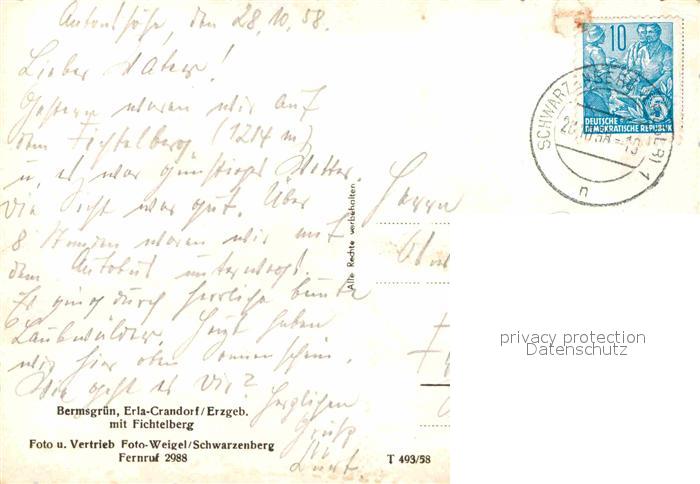 72641723 alte Postkarte Bermsgruen Erla Crandorf Fichtelberg postalisch gelaufen Erhaltung siehe scans [KathaD79] KatCode: 11110014191300