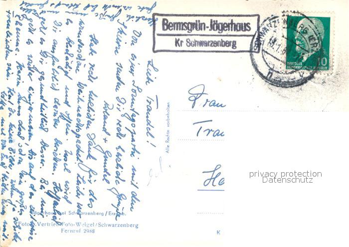73729447 alte Postkarte Bermsgruen Jaegerhaus postalisch gelaufen Erhaltung siehe scans [WerneD78] KatCode: 11110014191300