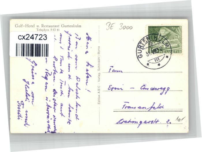 10752955 alte Postkarte Bern BE Bern Restaurant Gurtenkulm postalisch gelaufen KatCode: 11470060130948