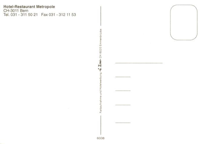13882045 Bern BE Hotel Restaurant Metropole postalisch nicht gelaufen Erhaltung siehe scans [FriedD77] KatCode: 11470060130948