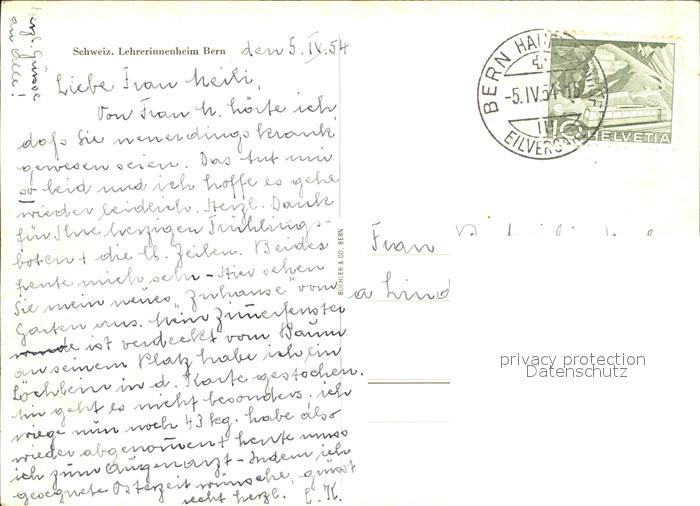 11639999 alte Postkarte Bern BE Lehrerinnenheim postalisch gelaufen Erhaltung siehe scans KatCode: 11470060130948