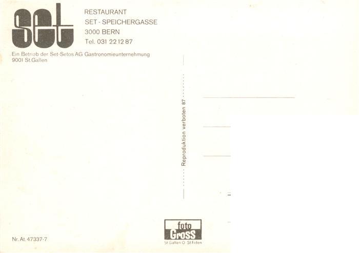 13882005 Bern BE Restaurant Set Speichergasse postalisch nicht gelaufen Erhaltung siehe scans [FriedD77] KatCode: 11470060130948