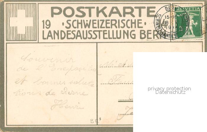 13747929 alte Postkarte Bern BE Schweizerische Landesausstellung Bern 1914 postalisch gelaufen Erhaltung siehe scans [WerneD78] KatCode: 11470060130948