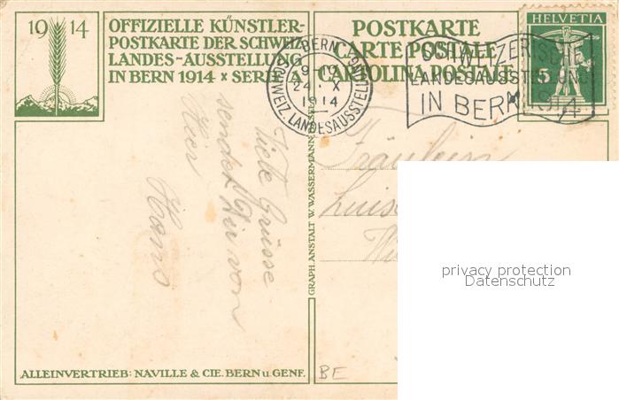 13748342 alte Postkarte Bern BE Schweizerische Landesausstellung Bern 1914 Blumen postalisch gelaufen Erhaltung siehe scans [WerneD78] KatCode: 11470060130948