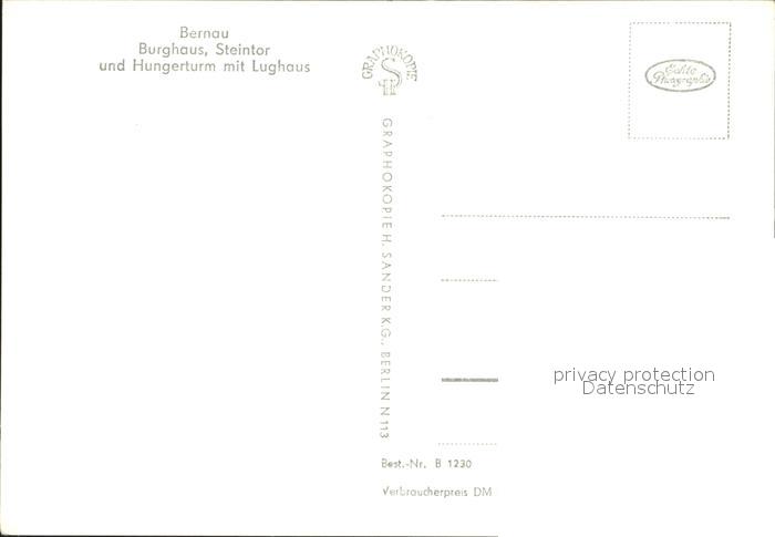 72136959 Bernau Berlin Burghaus Steintor Hungerturm mit Lughaus postalisch nicht gelaufen Erhaltung siehe scans KatCode: 11110012060020