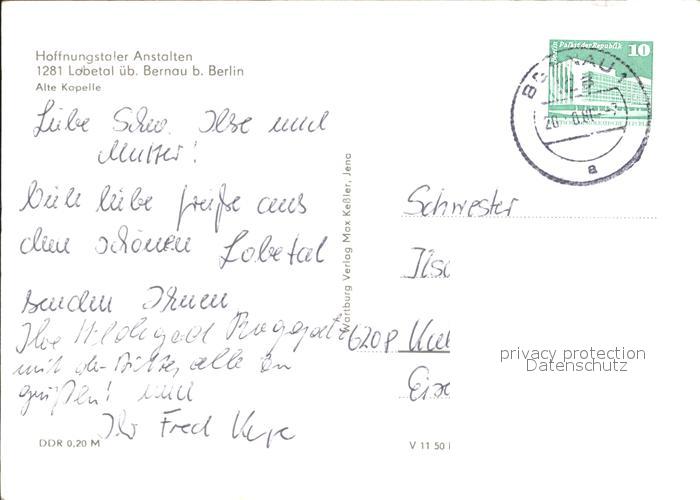 72255028 alte Postkarte Bernau Berlin Hoffnungstaler Anstalten postalisch gelaufen Erhaltung siehe scans KatCode: 11110012060020